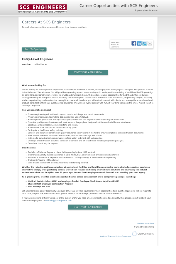 Entry Level Engineer Job At Scs Engineers In Midlothian Va 57931895 Tapwage Job Search